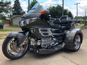 Newly triked this bike is ROAD READY. Highway pegs after market curved windshield driver floorboards everything else is stock. Trike For Sale Honda GL1800 Goldwing 29999 This is a 2005 Honda GL1800 Goldwing the queen of the touring motorcycles with 75000 kms on the bike a new unused.